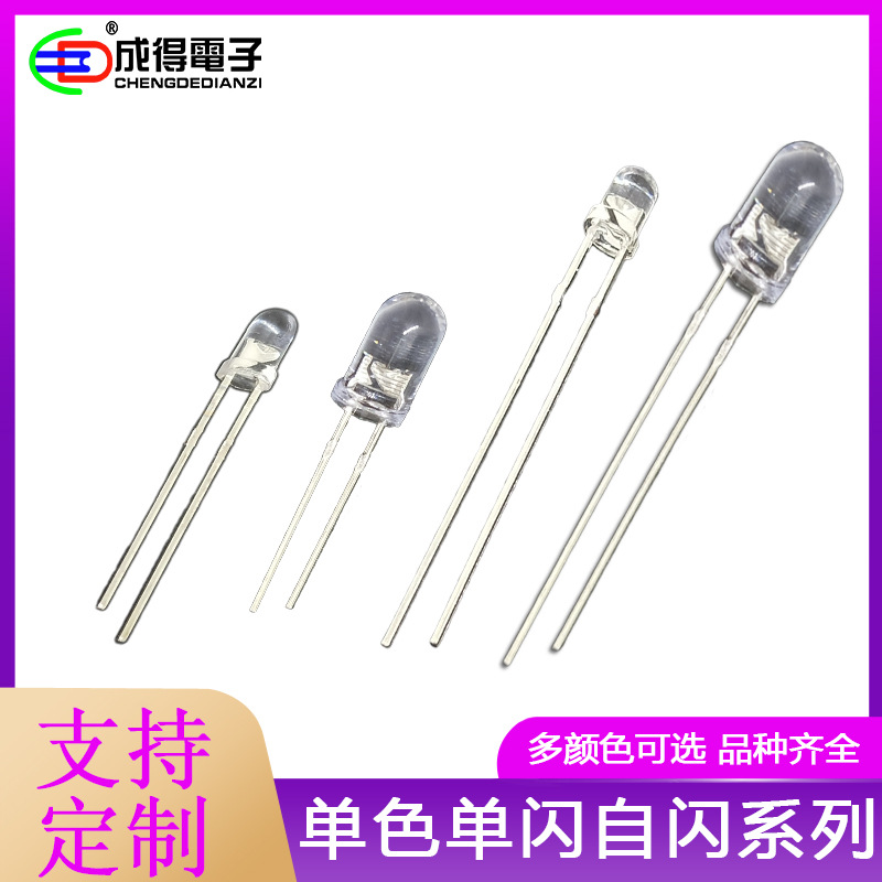 F5mm 3mm白光自闪灯珠 红色 绿灯蓝色单闪LED灯珠1.5hz快闪
