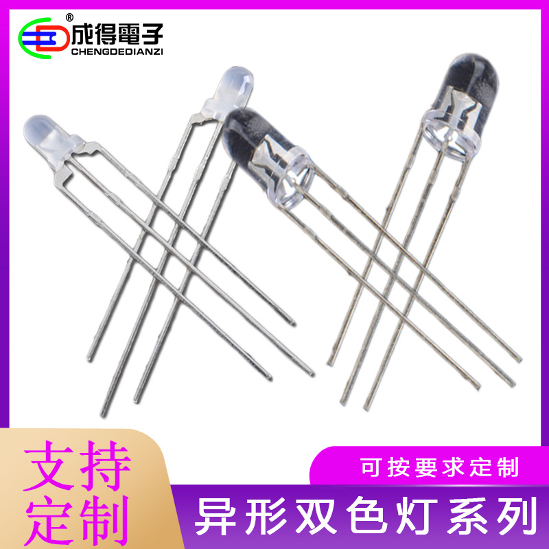 直插式F5 F3mm红带蓝翠绿双色无极性LED灯珠发光二级管小灯红绿