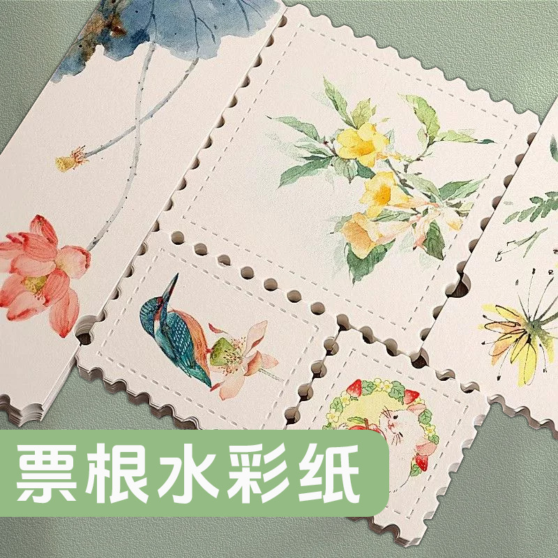 邮票空白画纸明信片创意卡片书签手绘异形票根水彩纸300g棉浆细纹