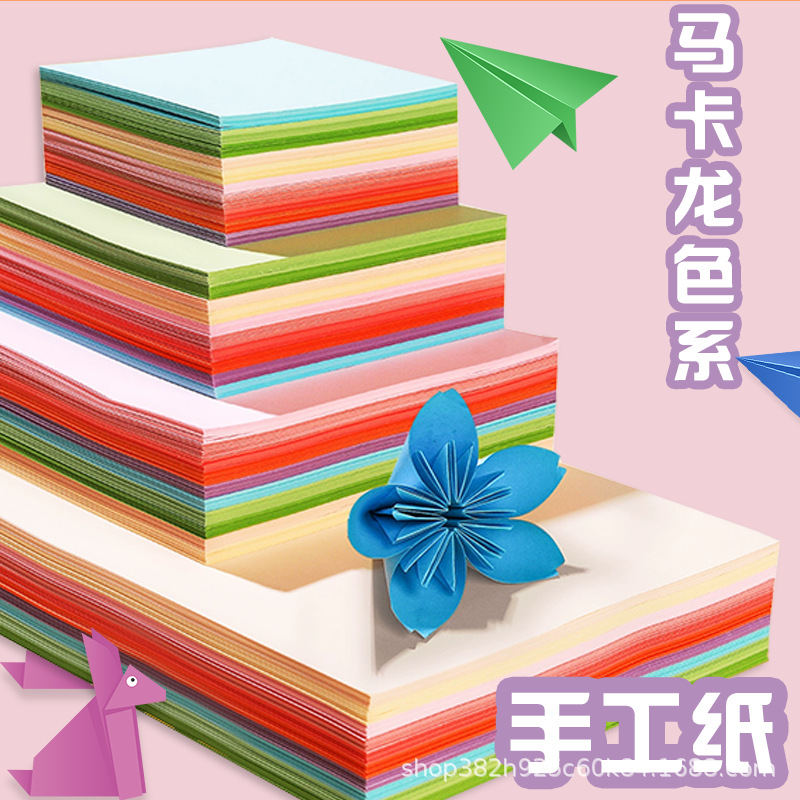 马卡龙彩色手工折纸幼儿园儿童学校环创DIY正方形双面混色剪纸