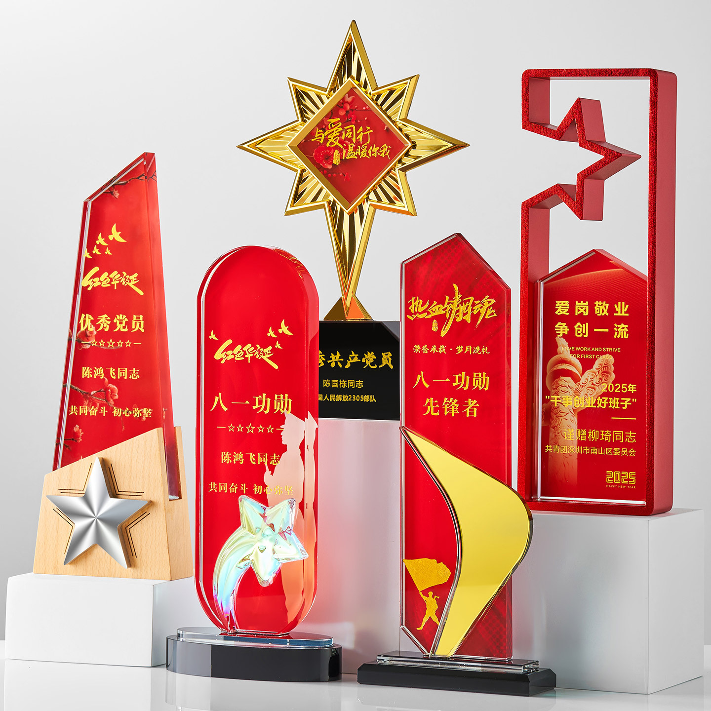 水晶奖杯定制八一红星红旗水晶奖杯优秀部门表彰荣誉红旗奖杯奖牌