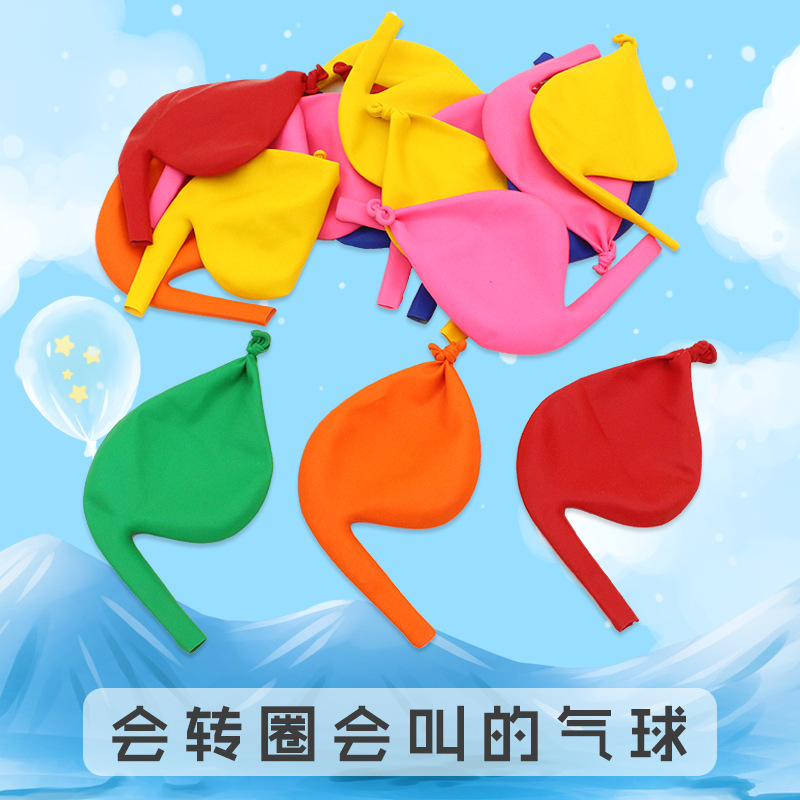 儿童充气会转圈会叫的地转乳胶气球火箭飞天长条玩具小汽球