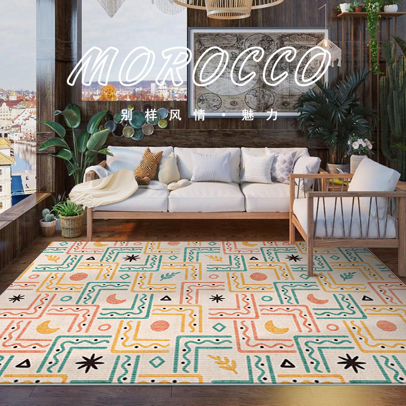 跨境波西米亚线条客厅地毯地垫民宿酒店满铺卧室床边地毯沙发地毯