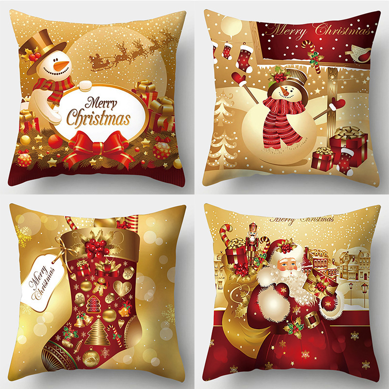 金色temu新款圣诞节抱枕套节日家居北欧靠枕沙发客厅靠垫套