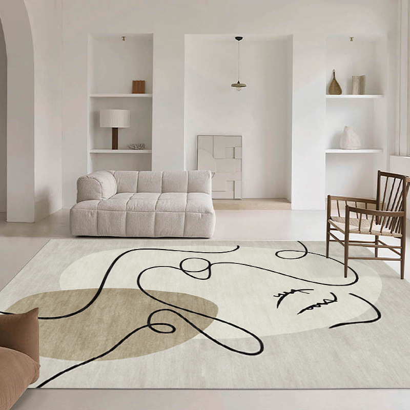 北欧 简约抽象线条客厅地毯沙发茶几满铺地毯植物少女卧室床边毯