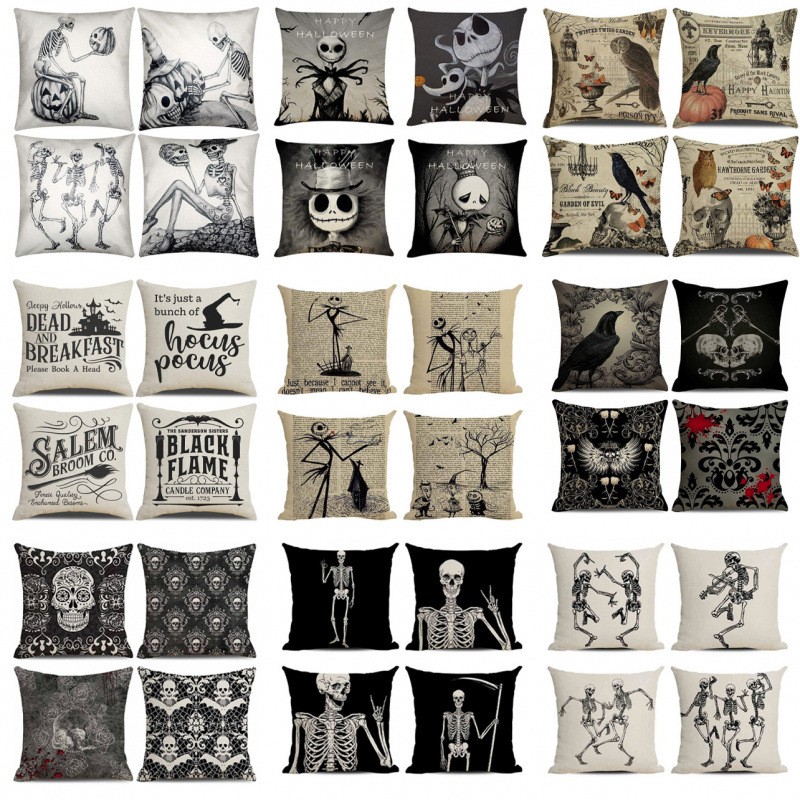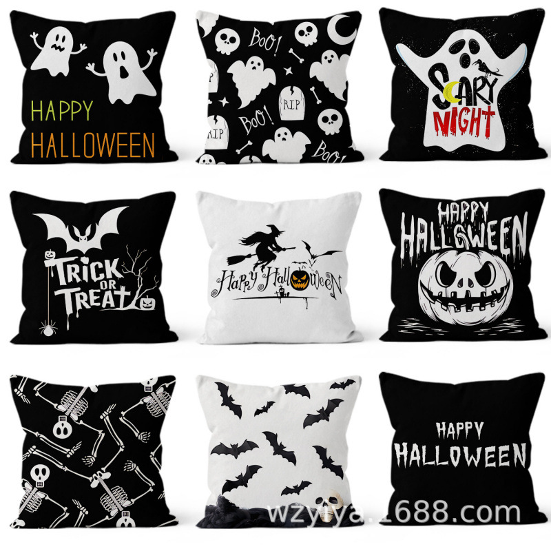 跨境万圣节装饰抱枕套幽灵骷髅家居而客厅卧室靠背装饰大靠垫套