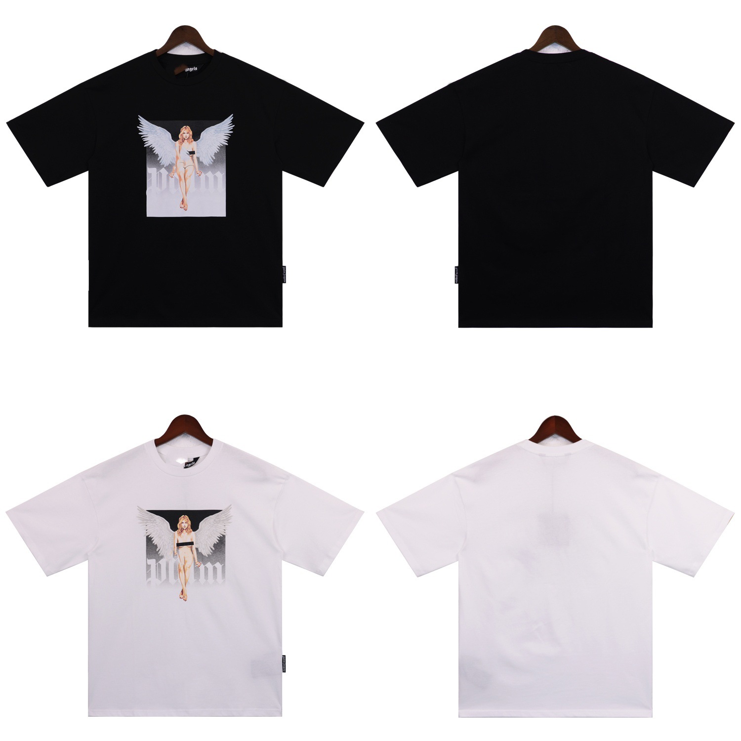 批发潮牌棕榈天使梵文字母印花男女Angsels情侣同款宽松短袖T恤衫