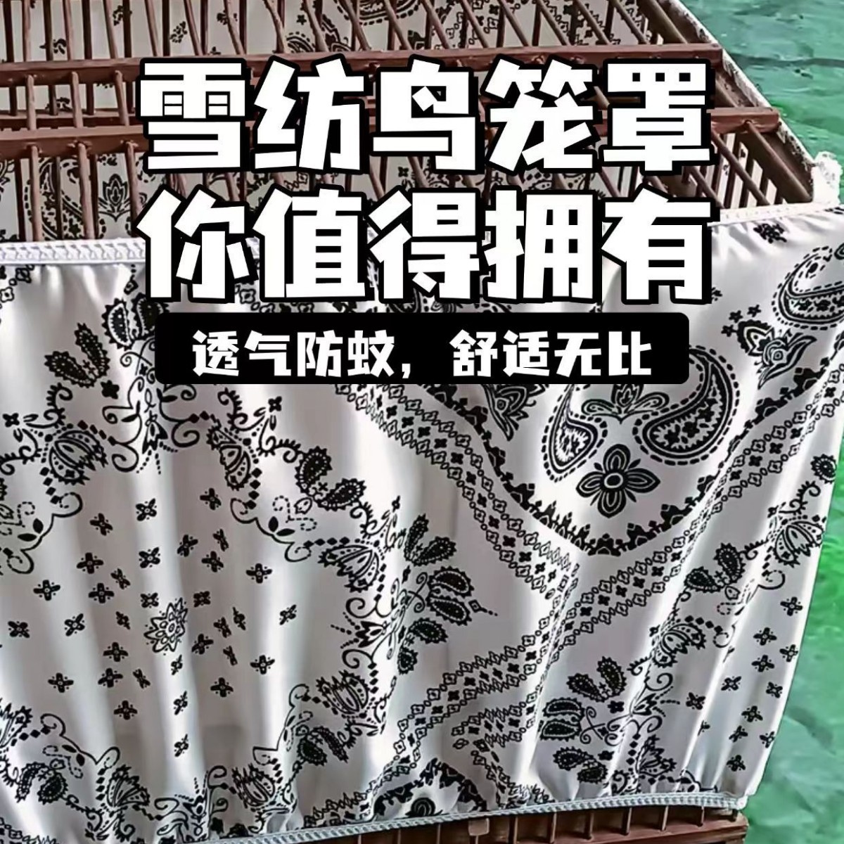 厂家直销夏鸟笼罩印腰果雪纺布罩鸟笼防飞溅防蚊虫布透气笼衣防尘