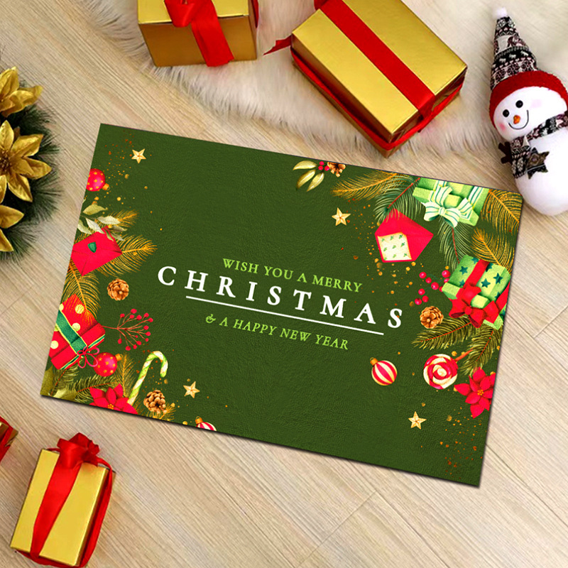 跨境亚马逊绿色圣诞防滑耐脏入户玄关门垫易打理节日现货地垫代发