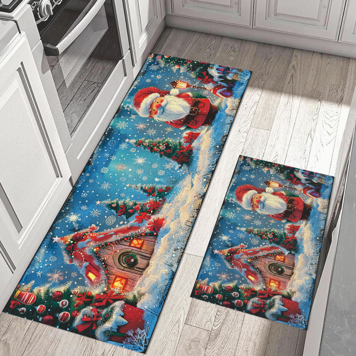 跨境亚马逊圣诞老人厨房地垫两件套防滑易打理耐脏地垫家用装饰