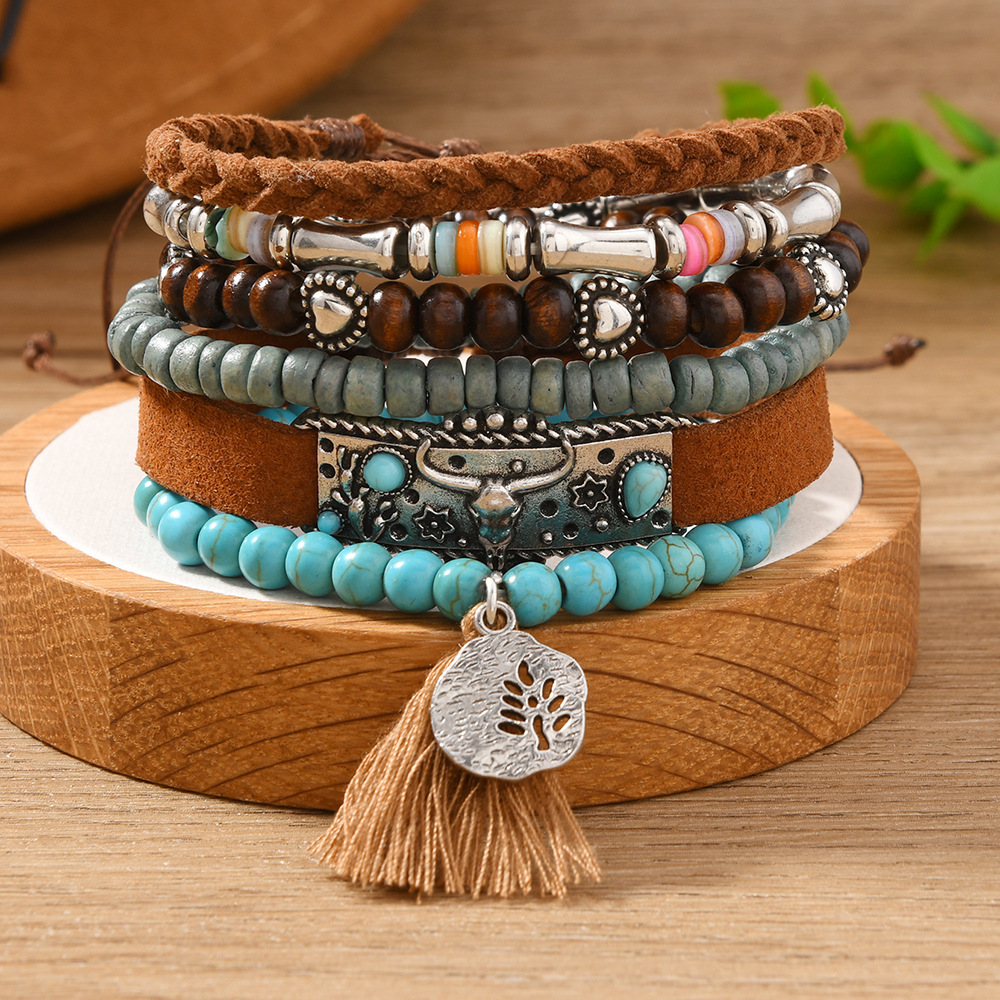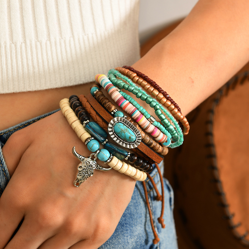 11件套欧美跨境饰品 民族风不规则木珠串珠手链 金属感松石Bracel
