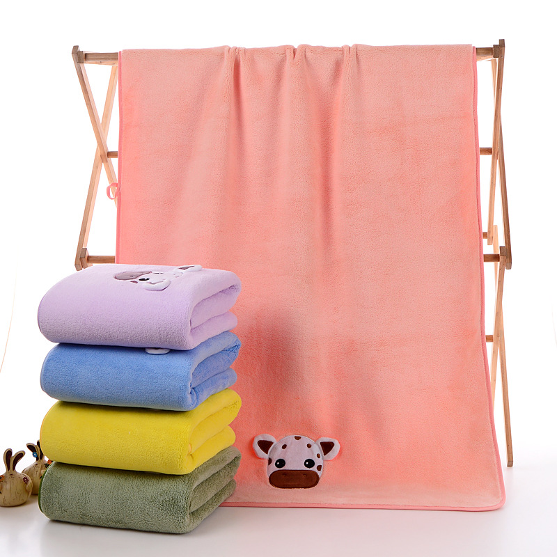 厂家直销珊瑚绒浴巾刺绣小牛贴布柔软吸水透气加厚美容院礼品浴巾