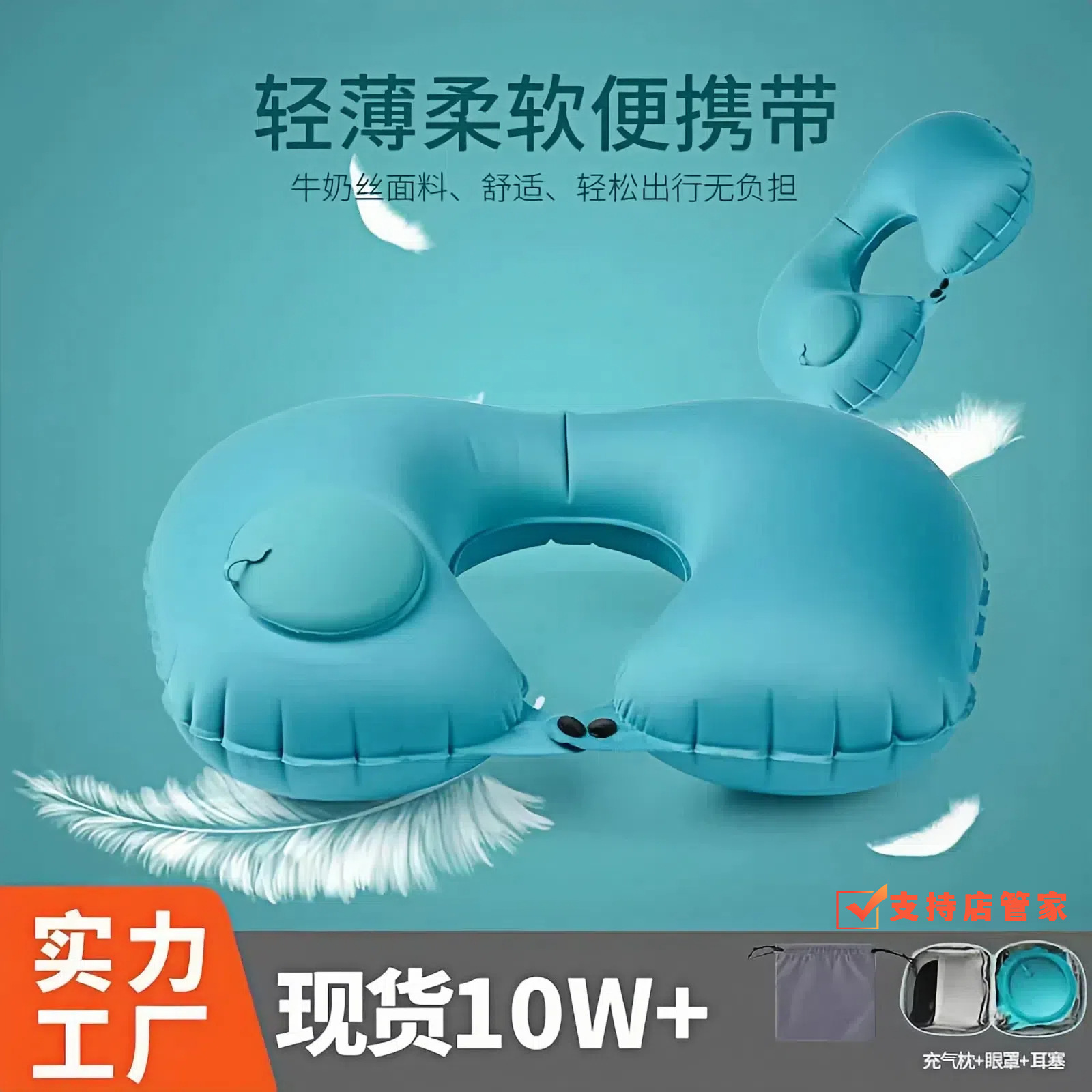 植绒按压式充气枕 可折叠U型枕户外旅行神器便携式飞机护颈枕脖枕