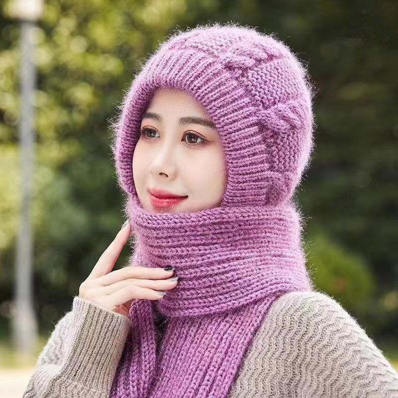 2024新款冬季帽子围巾一体女骑行防风防寒加绒加厚保暖针织毛线帽