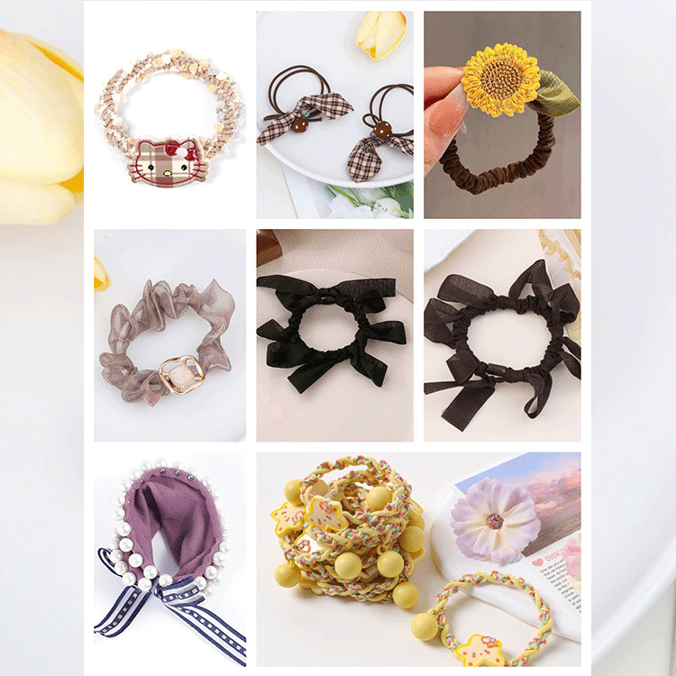 2025新款简约韩系可爱女生5件套高级感纱头绳扎马尾皮筋发饰