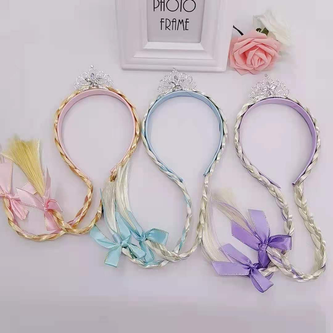 韩版网红假发辫子皇冠头箍可爱女宝宝头饰发饰小女孩生日礼物发箍