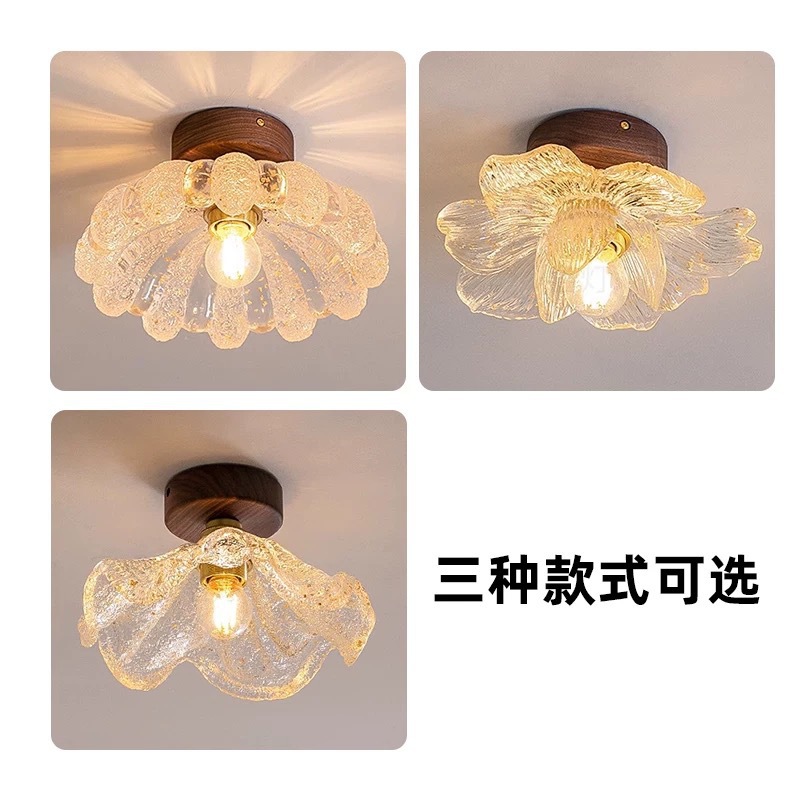 走廊过道灯法式轻奢玻璃灯创意莲花入户玄关灯阳台中古风吸顶灯