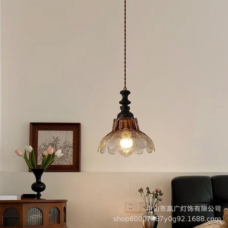 日式复古玻璃单头床头吧台民宿前台小洋楼工作室卧室餐厅花朵吊灯