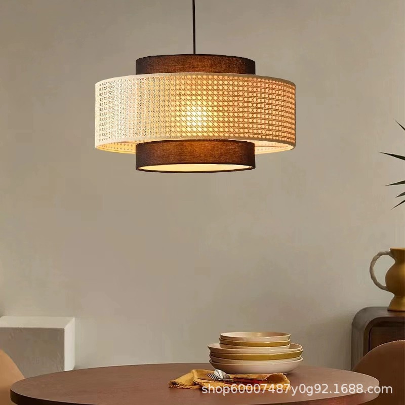 中式侘寂风吊灯跨境简约餐厅民宿饭店火锅店禅意茶室中式藤艺灯具