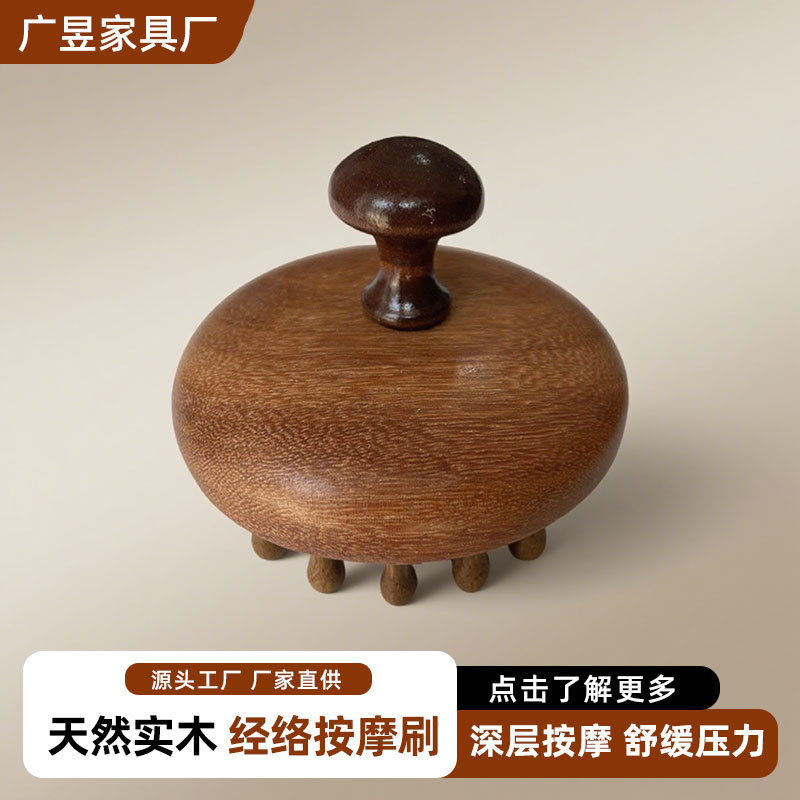 实木手持按摩梳头皮檀木按摩梳圆盘28个插齿头疗店经络洗头梳子