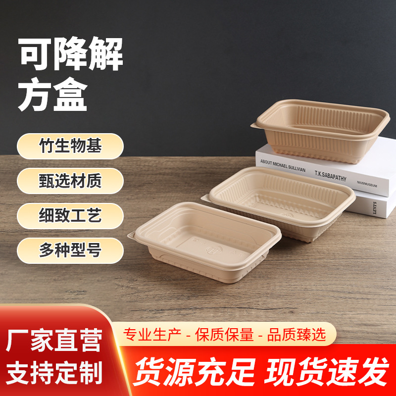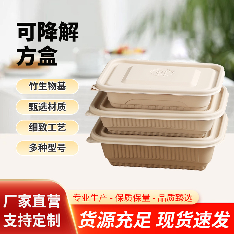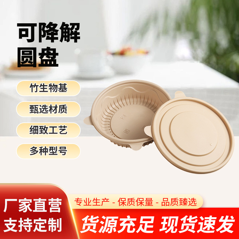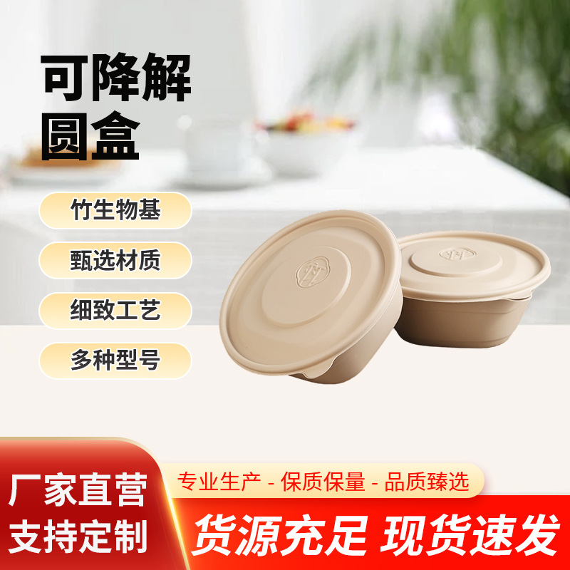 一次性餐盒可降解外卖打包盒圆形方形多规格便当餐饮工厂供应竹制