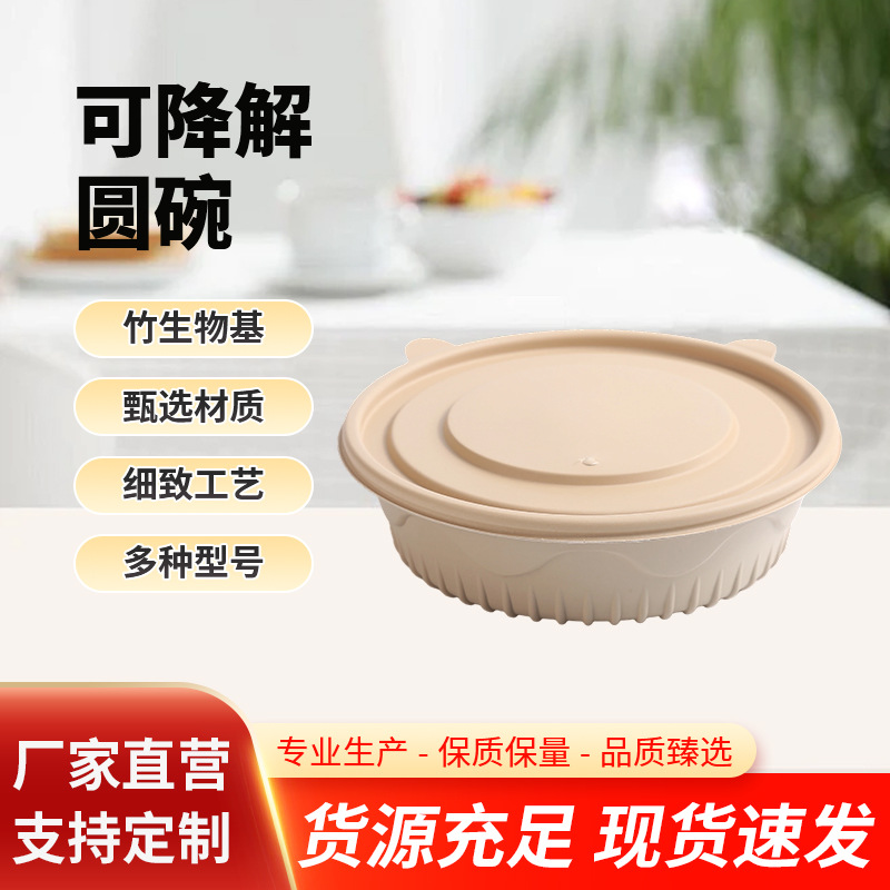 新品一次性餐盒可降解外卖圆形打包盒食品碗饭盒可餐具环保