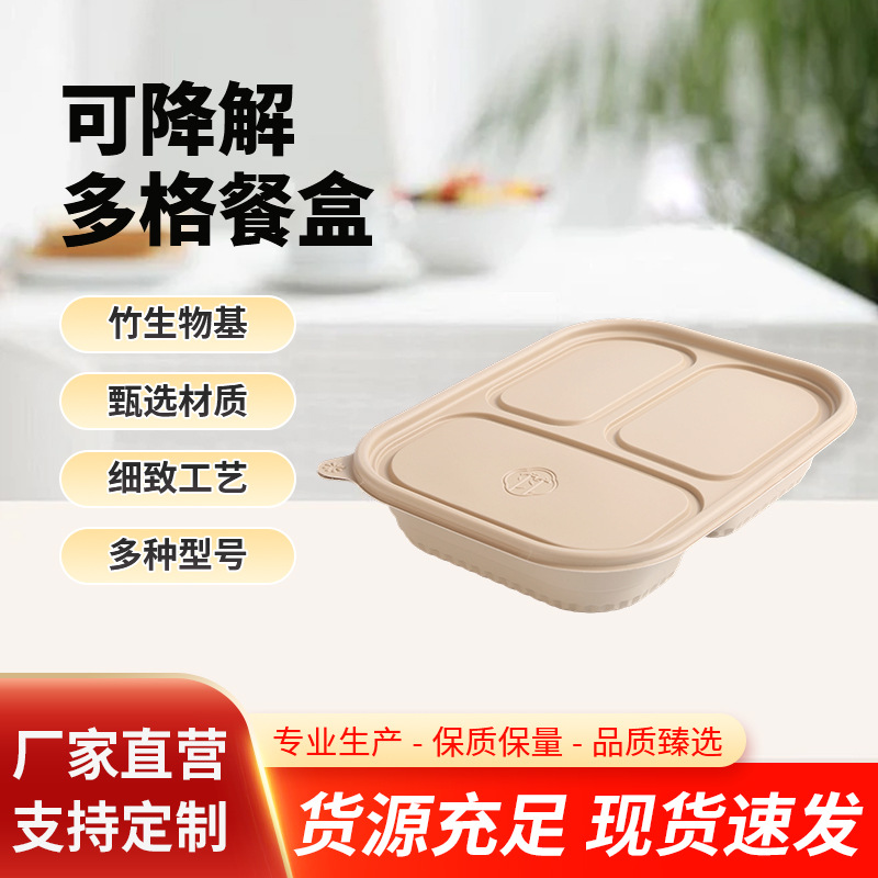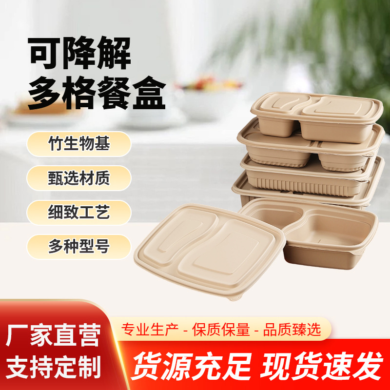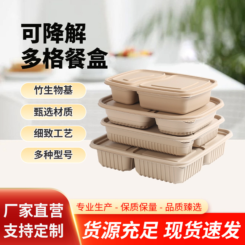 竹生物基一次性餐盒外卖打包盒可降解饭盒分格快餐盒堂食分格带盖