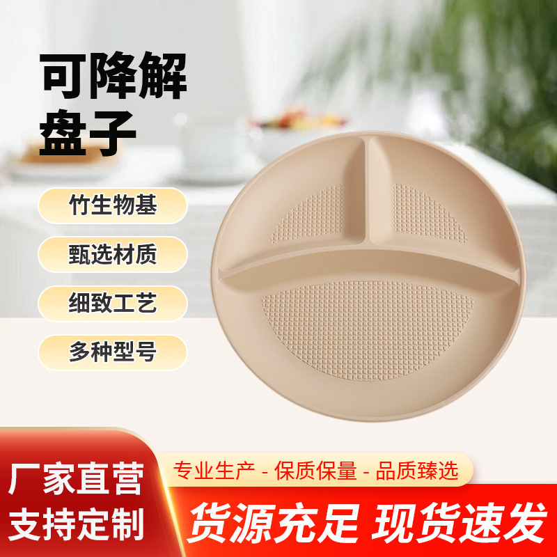 一次性竹粉圆盘加厚盘子分餐盘分格餐盘可降解盘工厂供应食品级