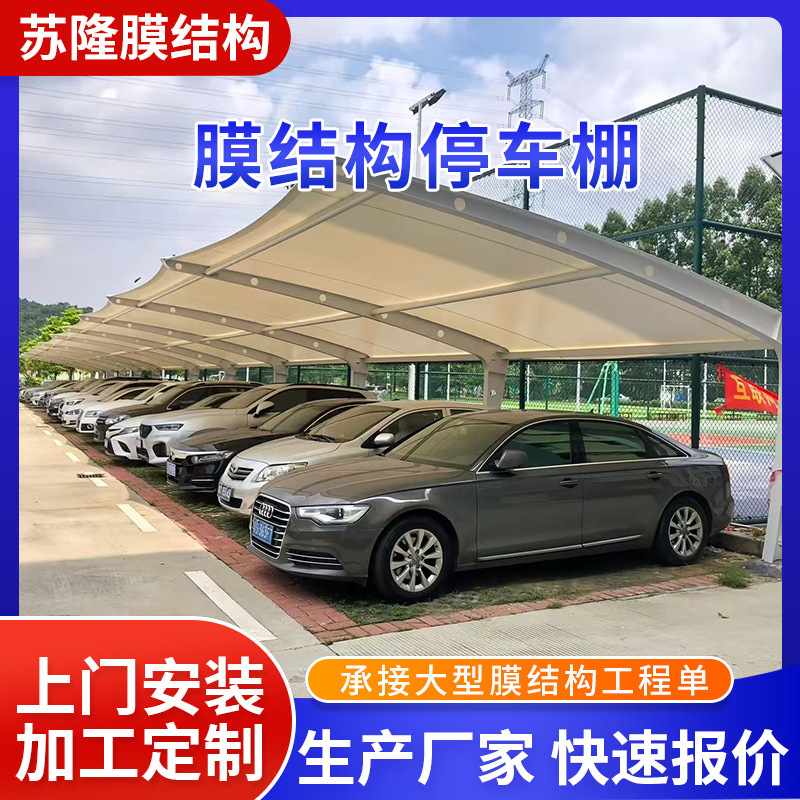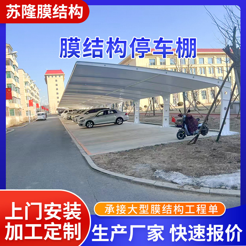 户外膜结构停车棚张拉膜充电桩汽车棚小区工厂电动车自行车遮阳棚
