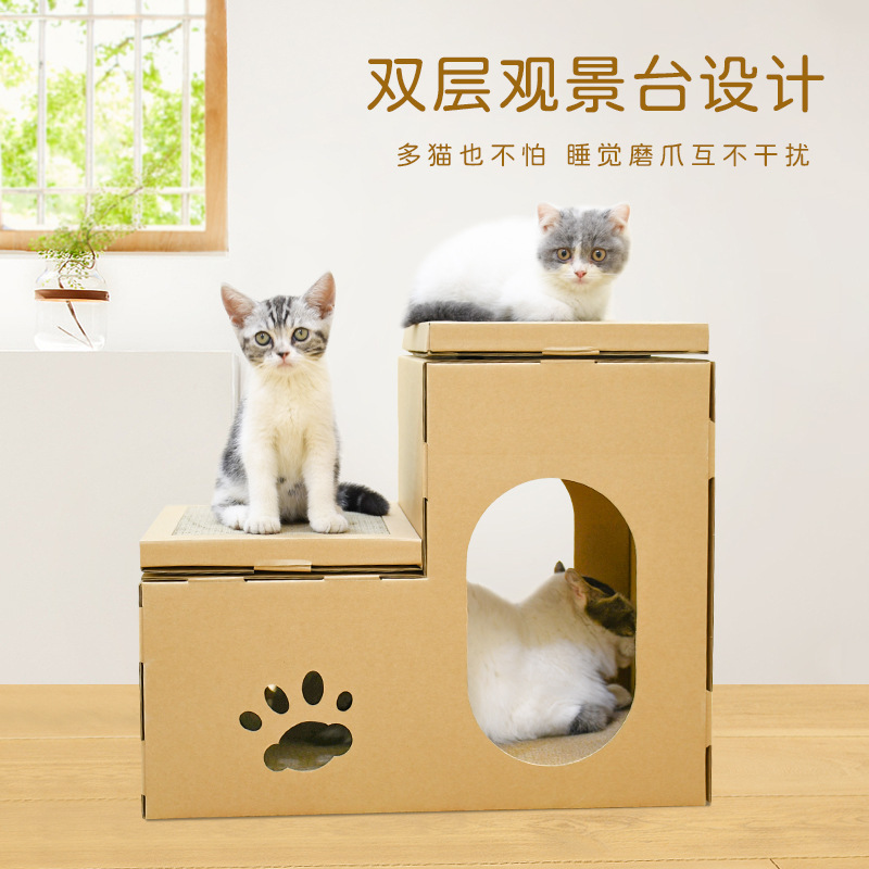 猫喵星人用品瓦楞纸猫屋双层房子猫咪磨爪玩具猫窝保暖猫抓板猫窝