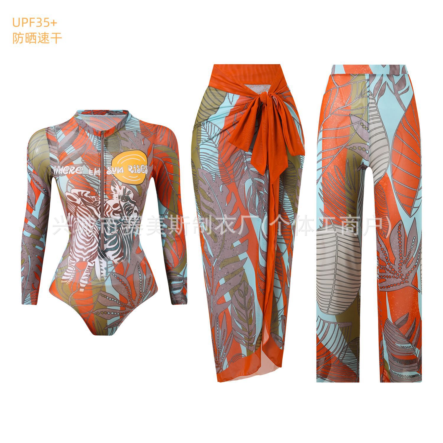 Купальник连体长袖防晒泳衣三件套网纱长裤俄罗斯泳衣女