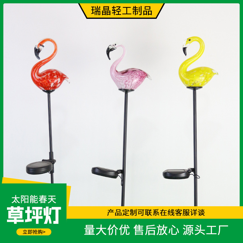 跨境太阳能草坪灯花园灯别墅灯庭院灯博山琉璃蘑菇 火烈鸟