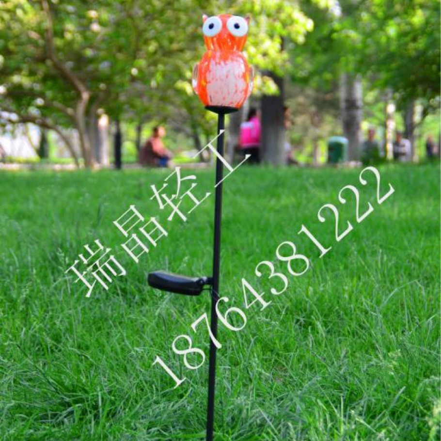 跨境热销琉璃玻璃太阳能地插猫头鹰灯草坪灯