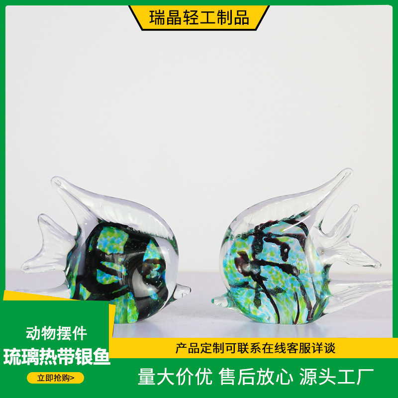 淄博博山琉琉璃热带银鱼现代风聚财风水工艺摆件纯手工居家装饰