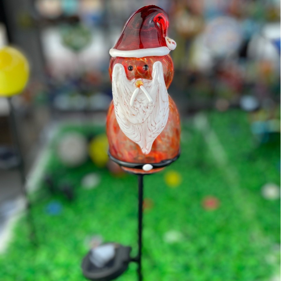 跨境热销琉璃玻璃太阳能地插圣诞老人灯 草坪灯