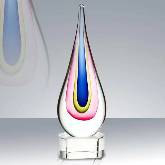 博山琉璃奖杯北欧轻奢抽象派水滴奖杯厂家优秀员工比赛奖牌纪念品
