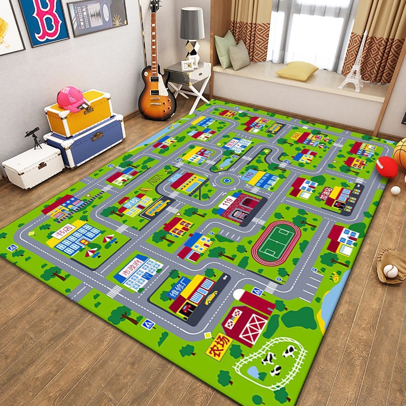 跨境卡通客厅儿童满铺地毯轨道易打理沙发茶几地垫卧室保暖床边毯
