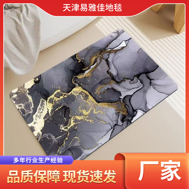 跨境轻奢大理石纹厨房地毯硅藻泥餐厅吸水防油污地垫卧室隔凉脚垫