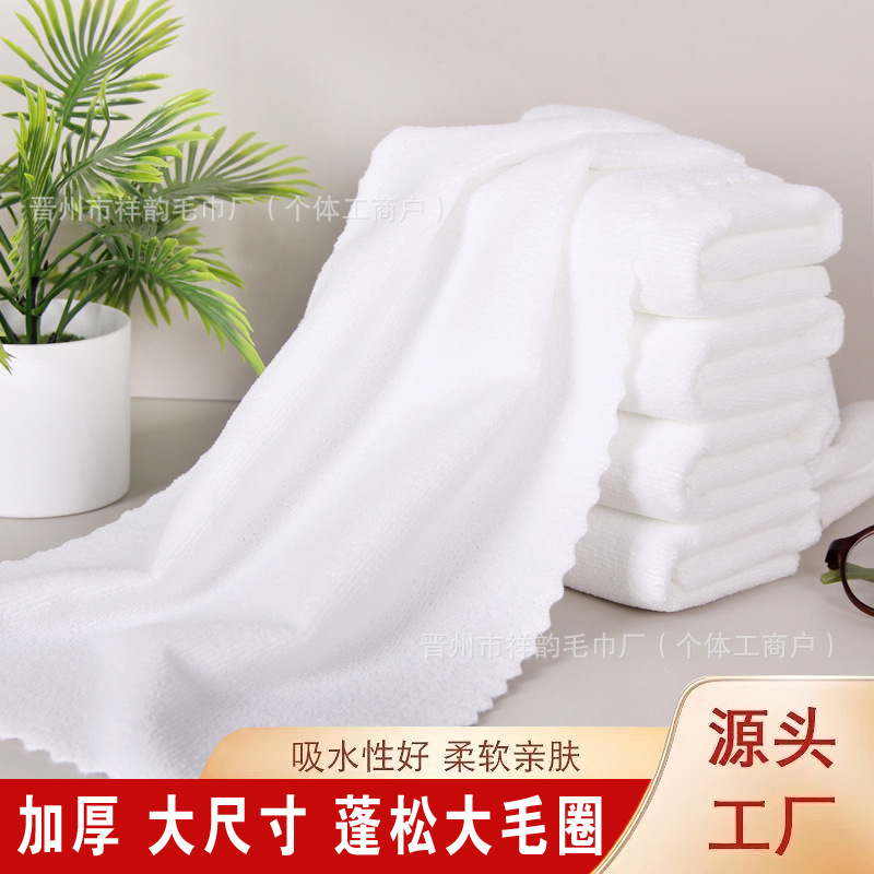 厂家直销酒店宾馆餐厅洗浴毛巾加厚吸水花边纯色经编一次性白毛巾