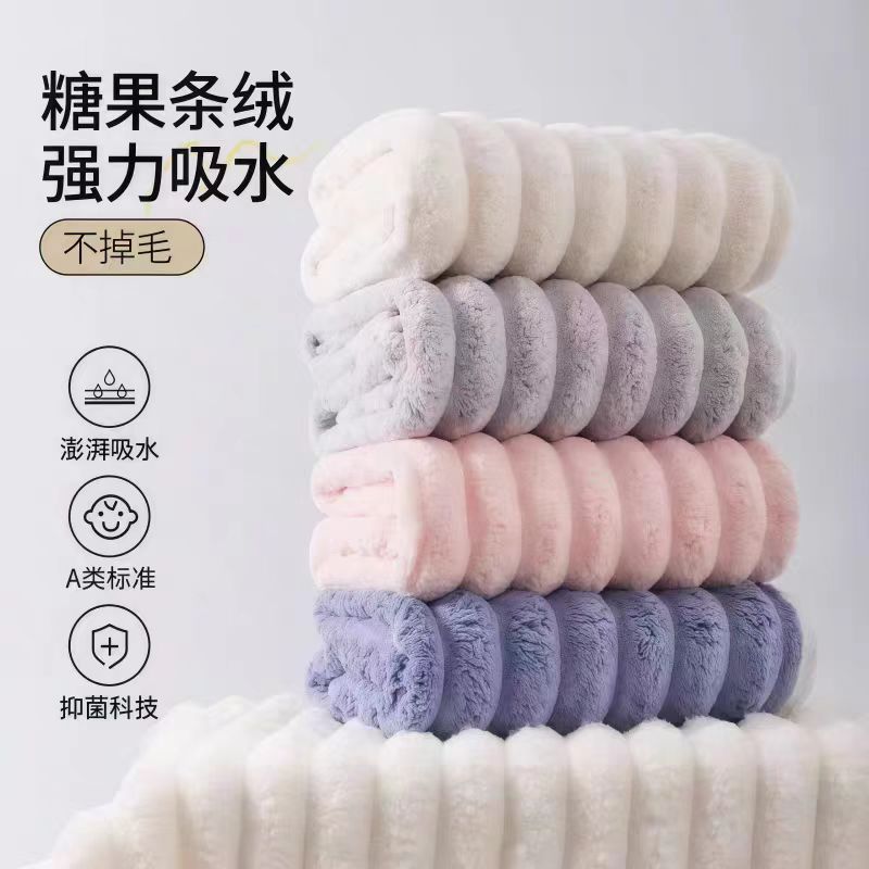 居家日用高密珊瑚绒糖果条毛巾浴巾礼品巾结婚加厚头巾礼创意送礼