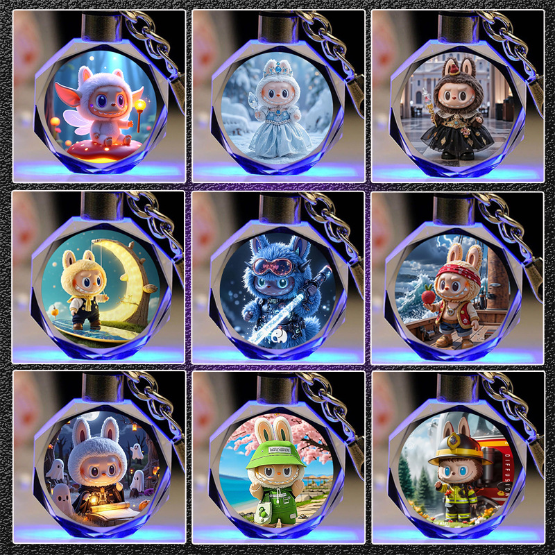 2025爆款AI版拉布布周边水晶发光钥匙扣LABUBU玩偶包挂件送礼玩具