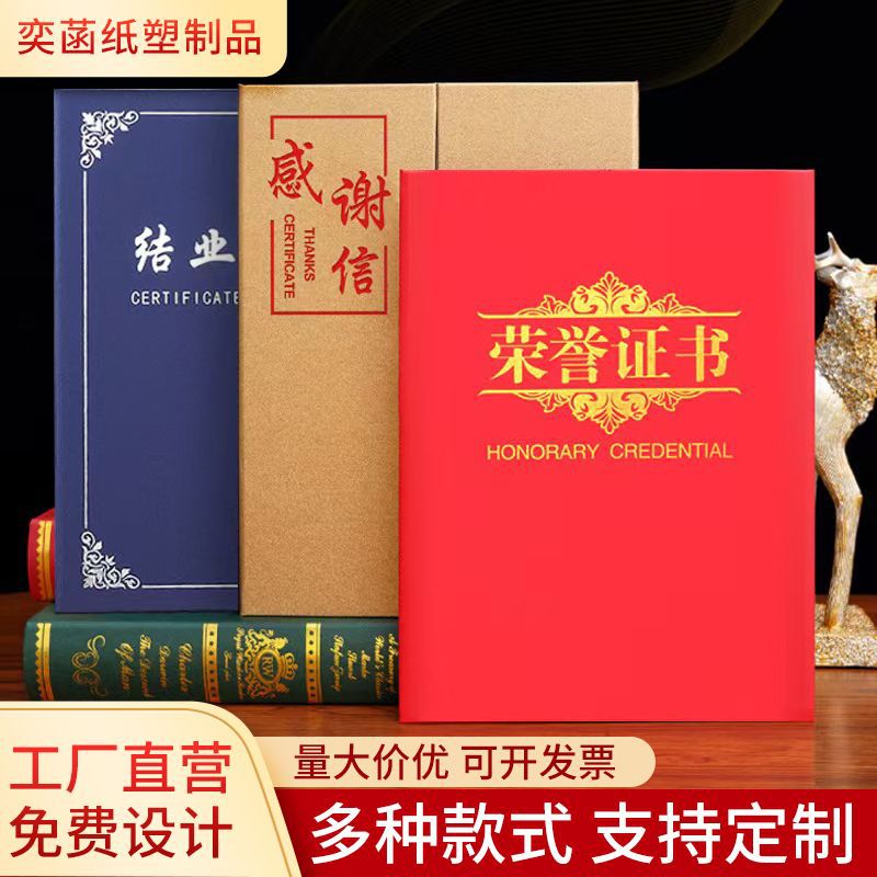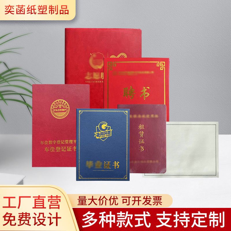 荣誉证书壳封面印刷烫金a4聘书员工获奖培训结业证书外壳赠送内页