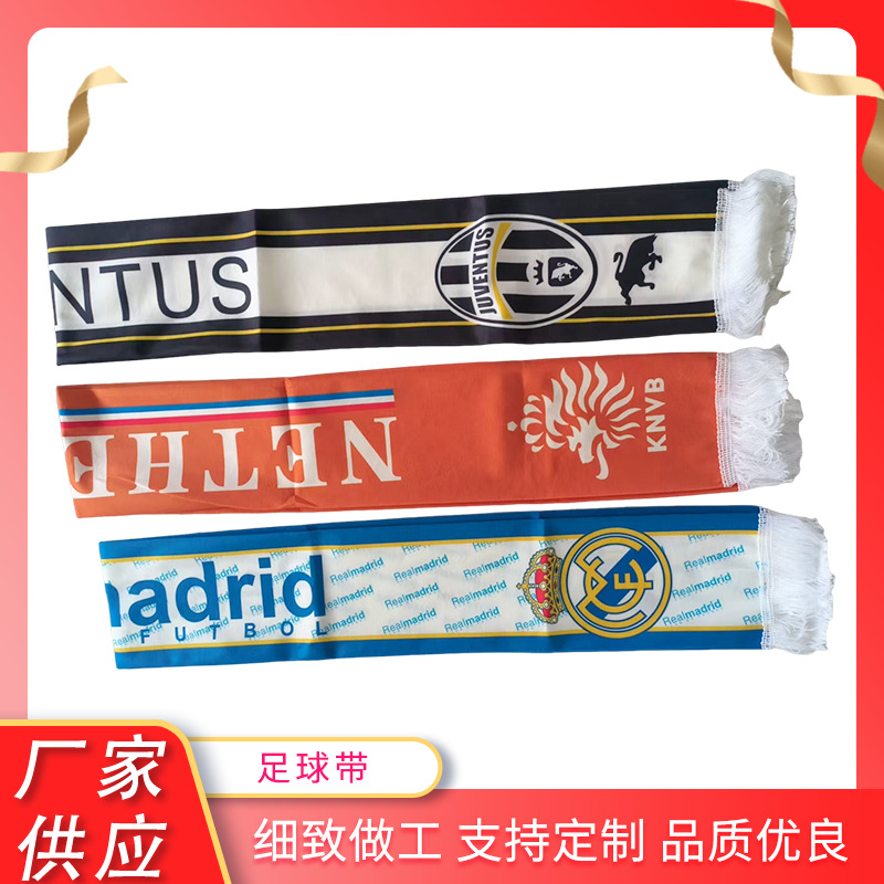 新款时尚印花手工编织足球带球迷围巾印花清晰柔软流苏厂家供应