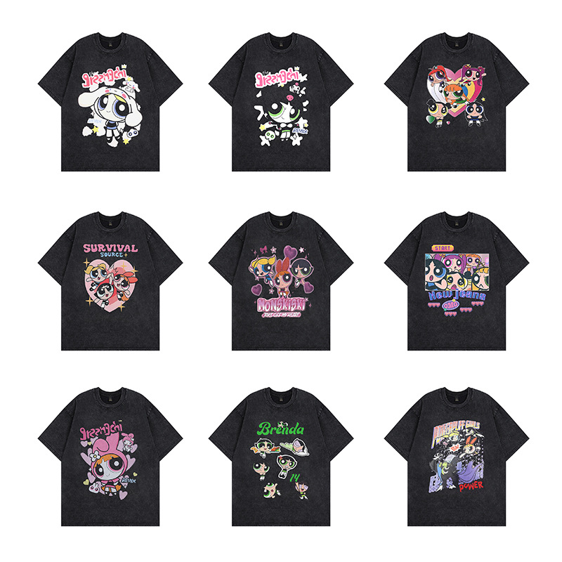 草莓California速卖通亚马逊原宿动漫上衣水洗做旧复古T恤