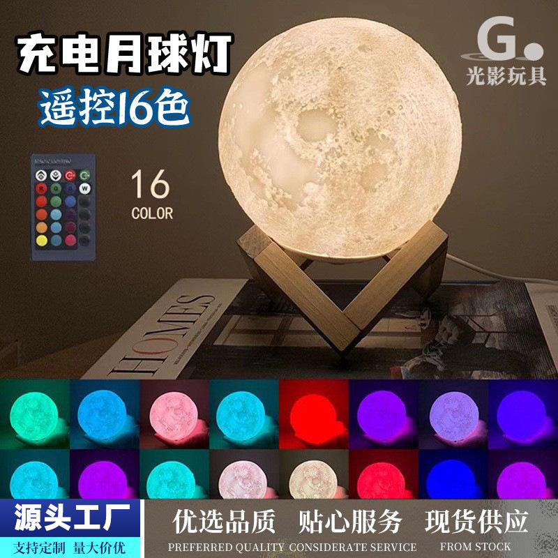 充电遥控3d月球灯卧室床头灯led小夜灯彩色月亮台灯创意装饰摆件
