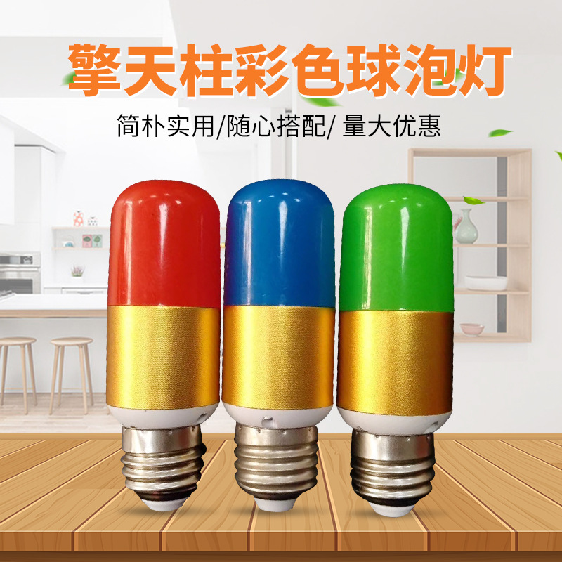 LED擎天柱彩泡5W红光绿光蓝光铝材恒流宽压高亮灯泡工厂直供批发