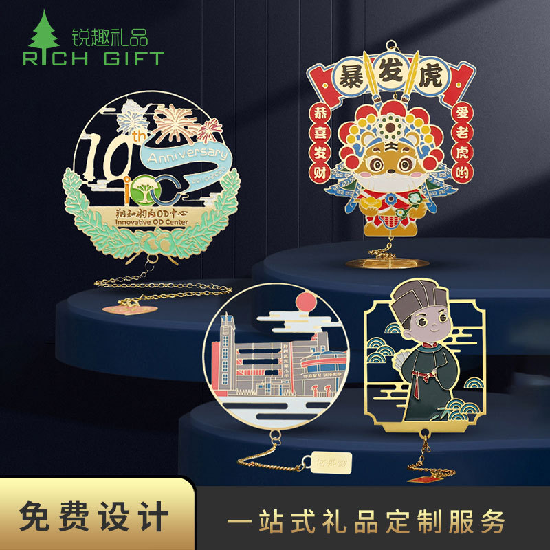 国风卡通书签定制创意镂空文创书签礼品烤漆旅游景点金属书签定做