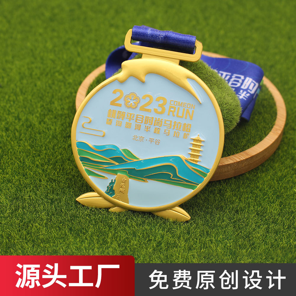 马拉松奖牌定制平谷时尚半马运动会跑步赛事金属烤漆山水奖章定做
