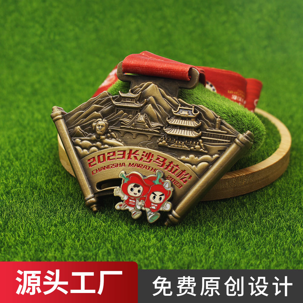 奖牌定制长沙马拉松跑步体育赛事活动金属特色卷轴造型纪念章批发