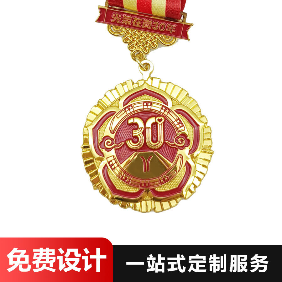 金属奖章定制企业单位优秀工作者老师光荣在岗30年荣誉勋章纪念品